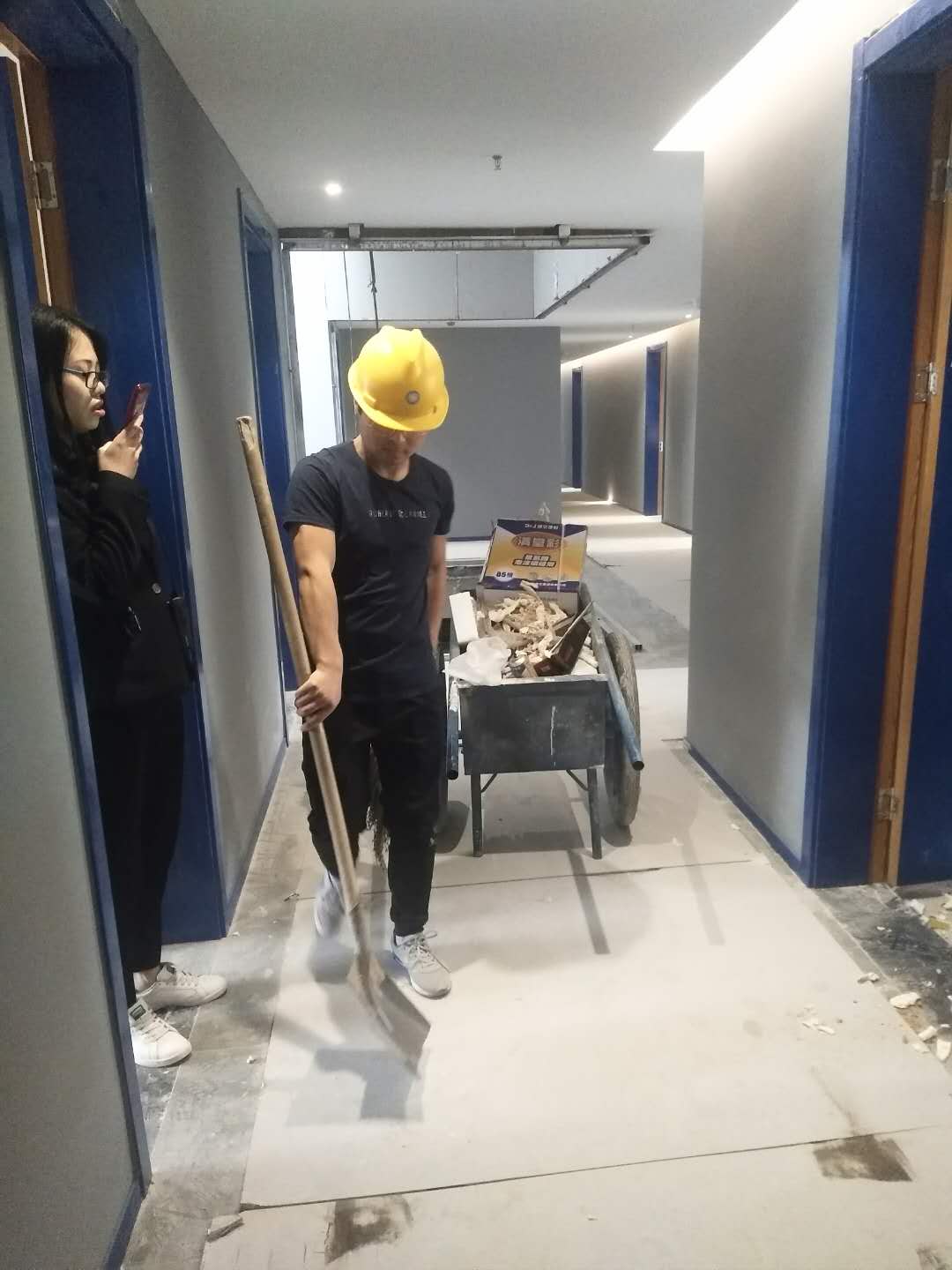 打膠并打掃衛生。